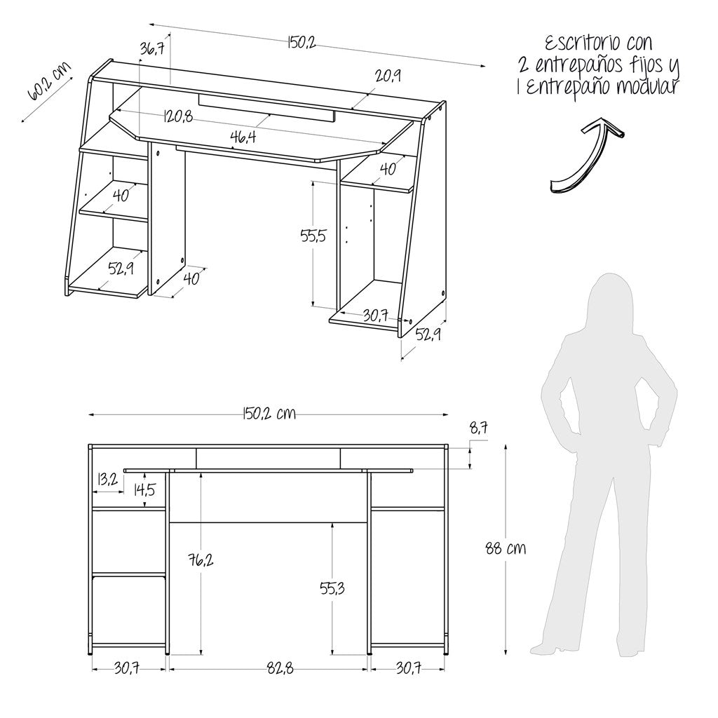 Ancho: 150,2cm Alto:88cm Profundidad:60,2cm Color Wengue Peso: 94,7kg