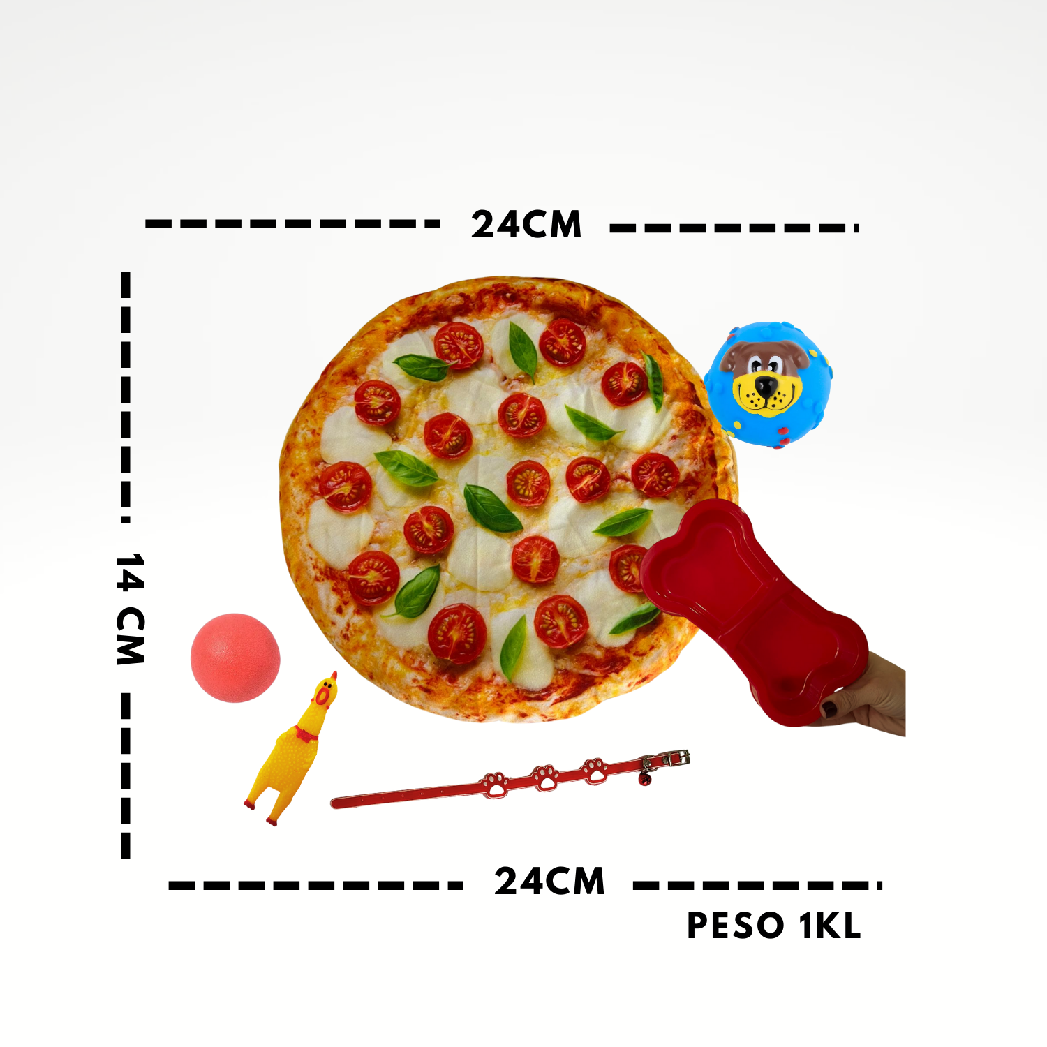 Comedero Hueso Mini 🍖🐾: Comedero compacto en forma de hueso, ideal para mascotas pequeñas. Perfecto para alimentar a tu compañero con comodidad y estilo.Alfombra Cama Pizza 🍕🐾: Alfombra suave y cómoda con forma de pizza, perfecta para que tu mascota descanse y se sienta como en casa.Pelota Maciza Pequeña ⚽🐕: Pelota resistente y de tamaño ideal para perros pequeños, perfecta para jugar y mantener activo a tu mejor amigo.Pelota Pito Cara de Perro 🐶⚽: Juguete interactivo con pito que emite sonido, estimulando el juego y la diversión en tu mascota.Pollo Pito Pequeño 🐔🔊: Juguete en forma de pollo que emite sonido, perfecto para mantener a tu perro entretenido y activo.¡Gratis! 🎁: Collar de goma con cascabel de regalo con tu compra.