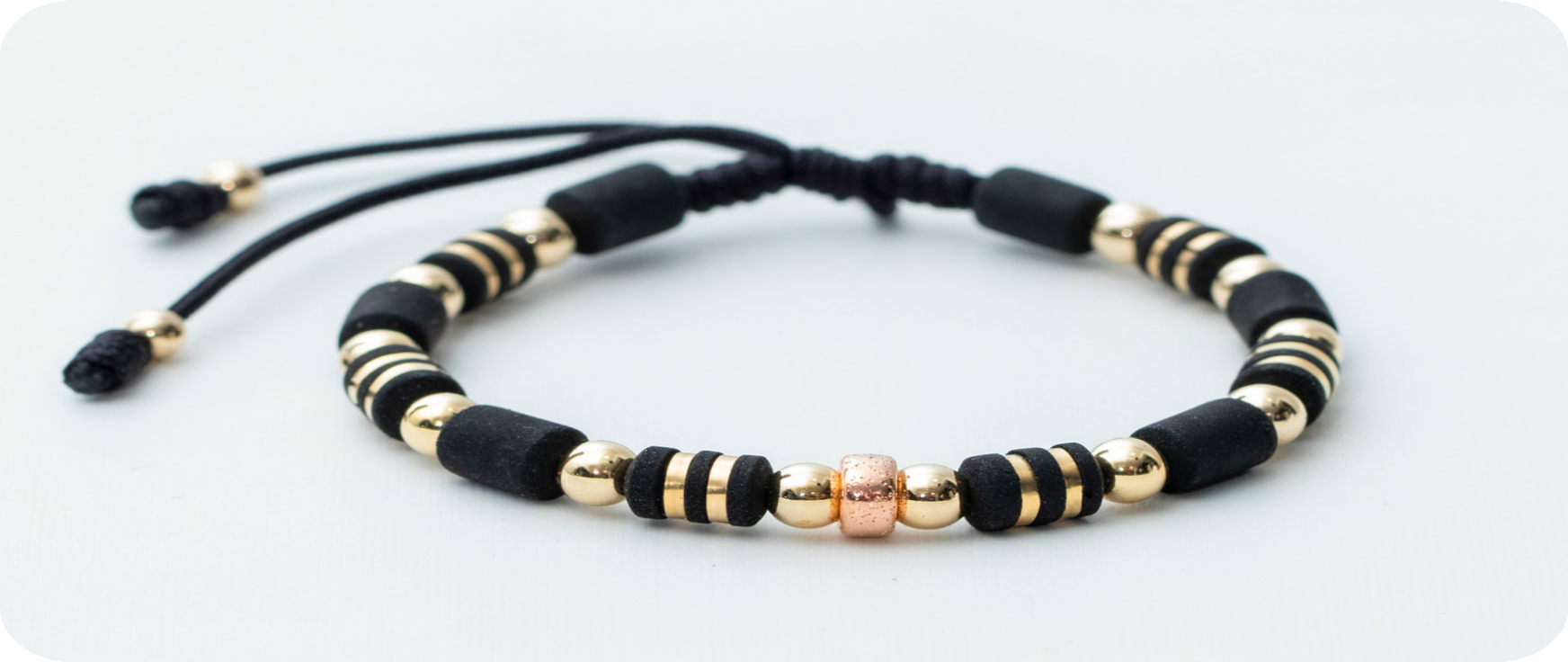 PULSERA ORO LAMINADO B5mm CON BCHATA DIAMANTADA Y BARRILES EN NEOPRENO TIPOS LISO Y DOBLE LÁMINA
