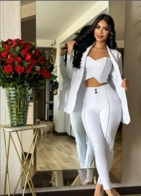 CONJUNTO DE DAMA3 PIEZAS MATERIAL : BENGALINA PREMIUM LICRADA TALLA ; S M LORMA NACIONAL-CORRE NORMAL